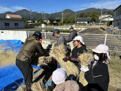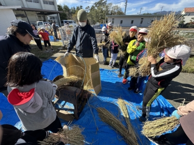 5年生が脱穀に挑戦 総合学習で5年生が取り組んできた米作り。 今回は足踏み脱穀機を使って脱穀に挑戦しました。 隣では機械が脱穀をしていて便利さを痛感しつつも、先人の知恵に驚く子どもたちでした。 間近に迫った収穫祭が楽しみです。 編集者2023-10-24T16:56:58+09:002023年10月24日|