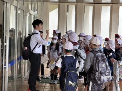 慣れない湿度に少しぐったり気味の子もいましたが、自動車工場の中に入ると、みんな目を輝かせて機械や組み上がっていく自動車の様子に見入っていました。