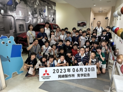 予定通り学校を出発して、三菱自動車岡崎工場の見学をしました。